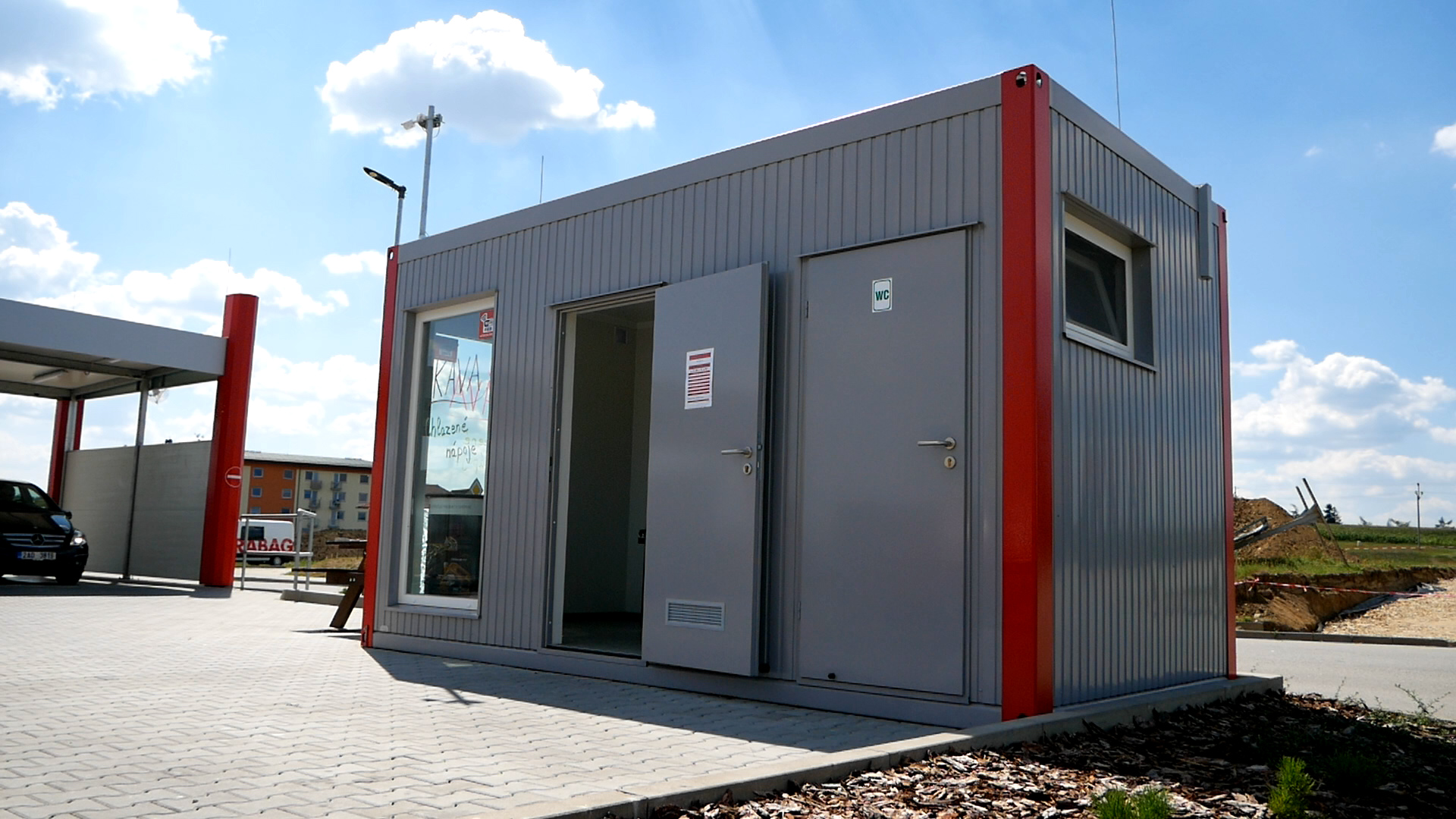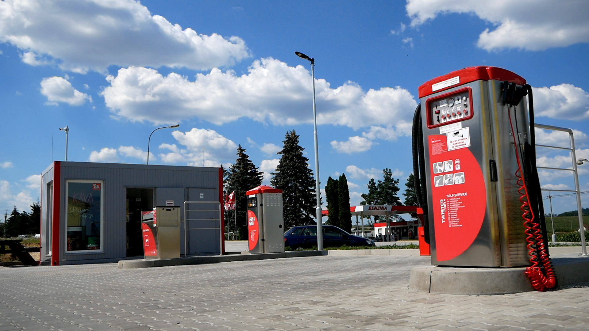 Dále můžete využít WC, kávový a nápojový automat, klepač koberců, Wi-Fi free a zařízení na huštění pneumatik.